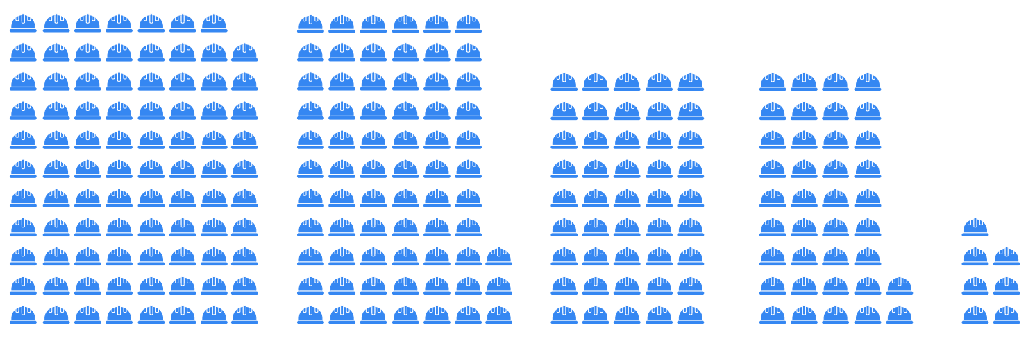 In 2022, the value of nonresidential construction was $888.5B.2 With a conservative 80% pass through of costs from GC to subcontractors, we estimated commercial subcontractor revenue to be $710.8B. Assuming a 66% expense distribution towards labor and materials, without price increases, $469.1B would have been spent ($234.6B on materials and $234.6B on labor).
