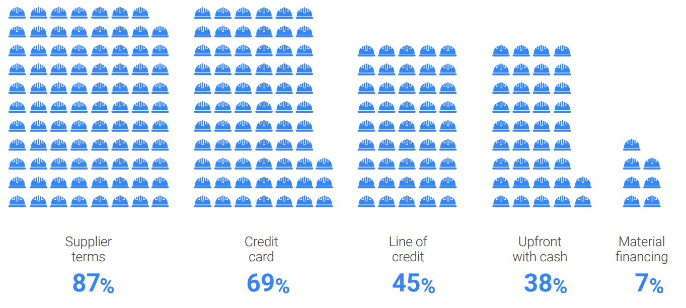 Arguably the most cash-flow-friendly financing option for subcontractors, material financing remains the least leveraged, yet more than double the respondents from the survey claimed they’ll be leveraging it in 2023, compared to 2022. It’s the largest untapped opportunity for subcontractors to extend their term length while leveraging the same supplier discounts they would get for paying upfront in cash.