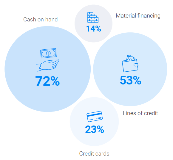 When pressed as to how they plan to fund growth, a majority of subcontractors favor using finite cash reserves. While cash on hand is the most popular way to fund business growth, very few subcontractors rely exclusively on cash. Most use supplementary financing methods in combination with cash.