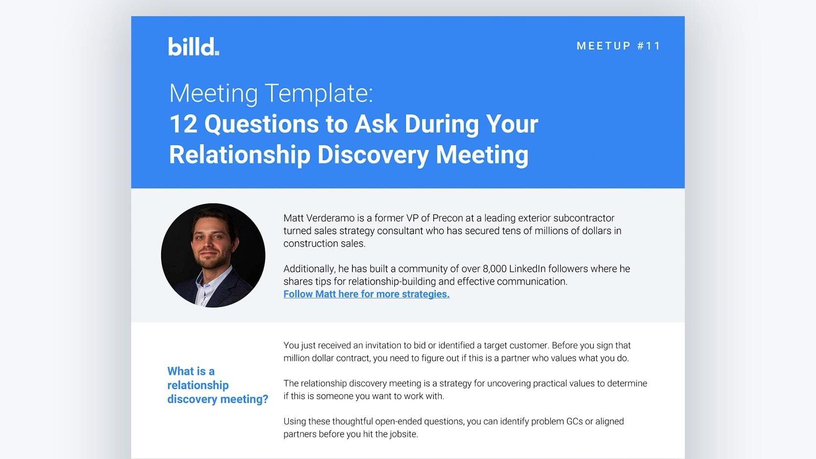 It's important to get GC relationship discovery right. This is your moment to figure out whether they align with your company values. Matt Verderamo, an expert construction consultant, shares what key questions to ask during that conversation.