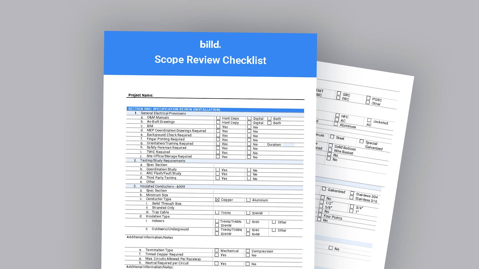 This checklist encompasses the second step of the bid lifecycle. This checklist is specific to electrical, but can be used as a reference point by other subcontractors to create their own.